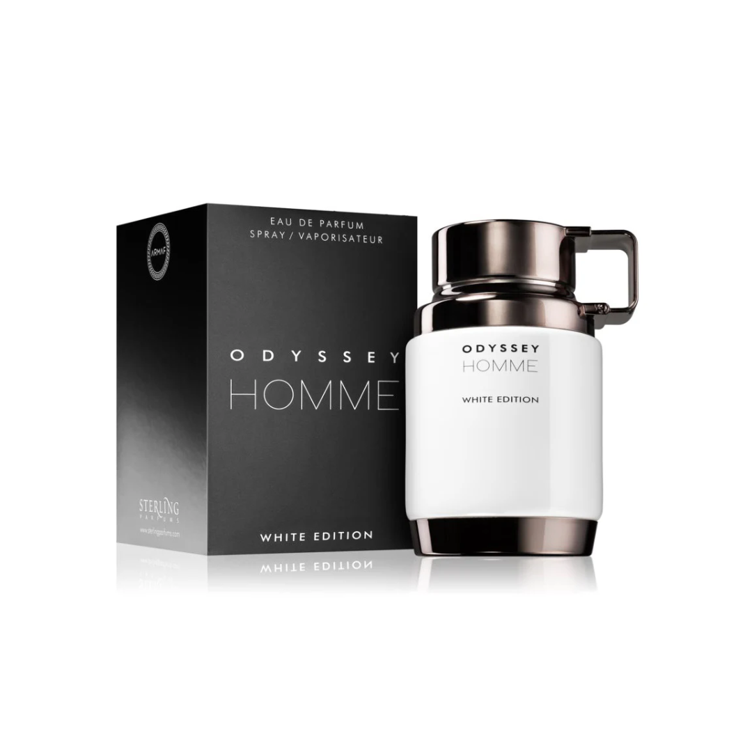 Odyssey Homme White Edition de Armaf es una fragancia de la familia olfativa Oriental Fougère para Hombres. Las Notas de Salida son pimienta rosa, yuzu y toronja (pomelo); las Notas de Corazón son hojas de violeta y notas marinas; las Notas de Fondo son ámbar, Amberwood y madera de gaiac.